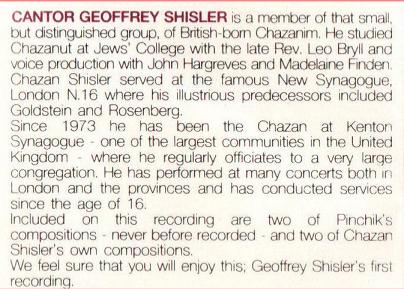 I had only one rehearsal with Chazan Shisler- the Choir began Naumbourg’s Seu Shearim and then Chazan Shisler’s voice soared above with the sweetest purest tone. It was the most beautiful and inspiring music. (Naumbourg was Chazan at the Rue de Notre Dame synagogue in Paris.) Chazan Shisler left to go to Kenton.
